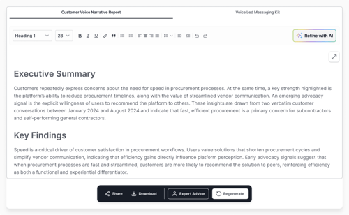 Yes, by grounding outputs in real voice-of-customer data and quotes, similar to the approach used in Intelligent Research capabilities.